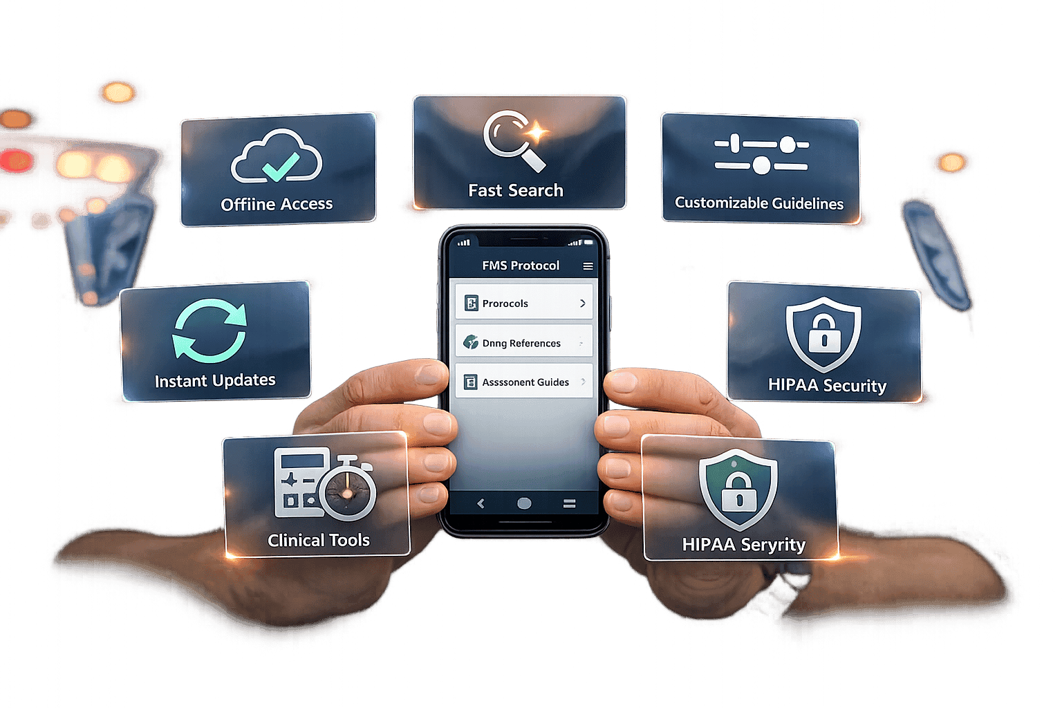 EMS protocol apps: offline access, fast search, customizable guidelines, instant updates, clinical tools, and HIPAA-level security.